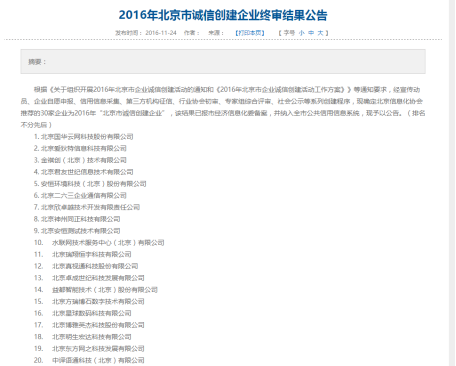 2016北京诚信创建企业*单(部分)详情请见:http://www.bjit.org.cn/Html/NewsView.php?ID=799